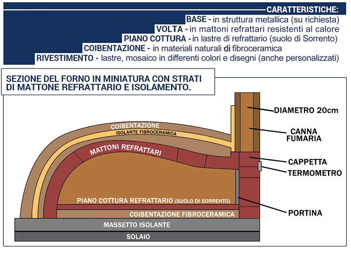 Il rivestimento dei forni è realizzato in materiale refrattario per resistere alle alte temperature e trattenere a lungo il calore per poi rilasciarlo lentamente anche dopo che il forno è stato spento.
